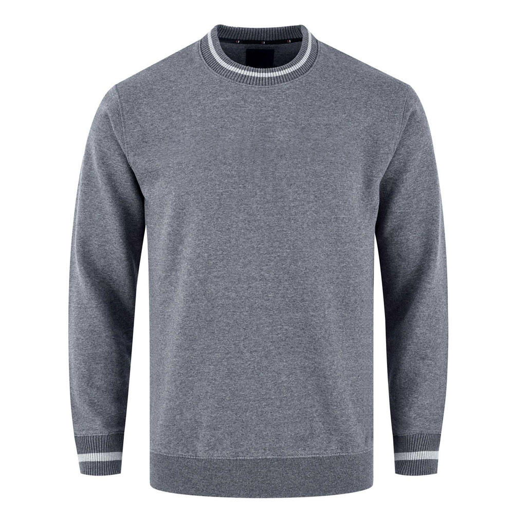 Tags: Alexa Enterprises, apparel manufacturer South Korea, clothing supplier USA, collegiate apparel supplier, corporate uniform supplier, custom sweatshirt manufacturer, embroidery blank, heather grey crewneck, heavy cotton fleece, OEM clothing factory, preppy streetwear, striped collar sweatshirt, tipped rib crewneck, varsity sweatshirt
