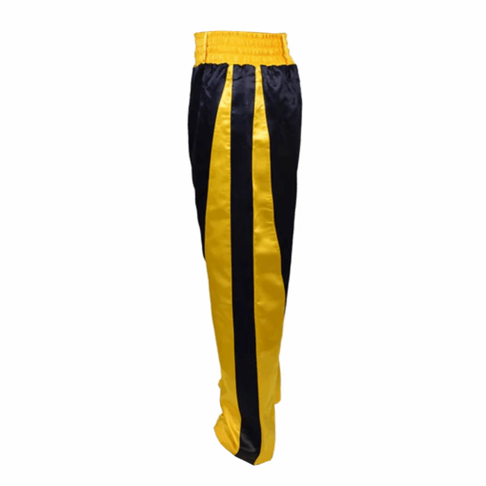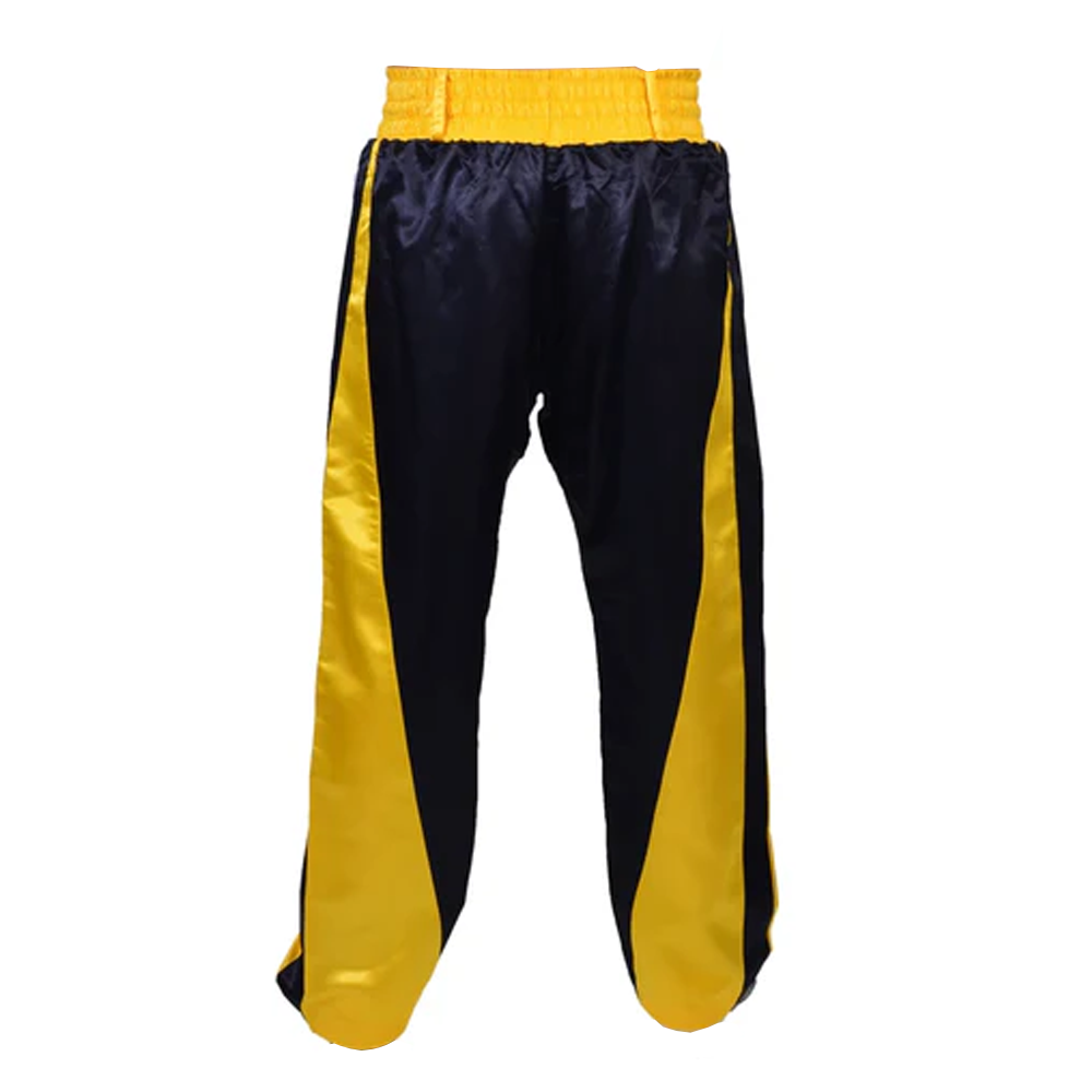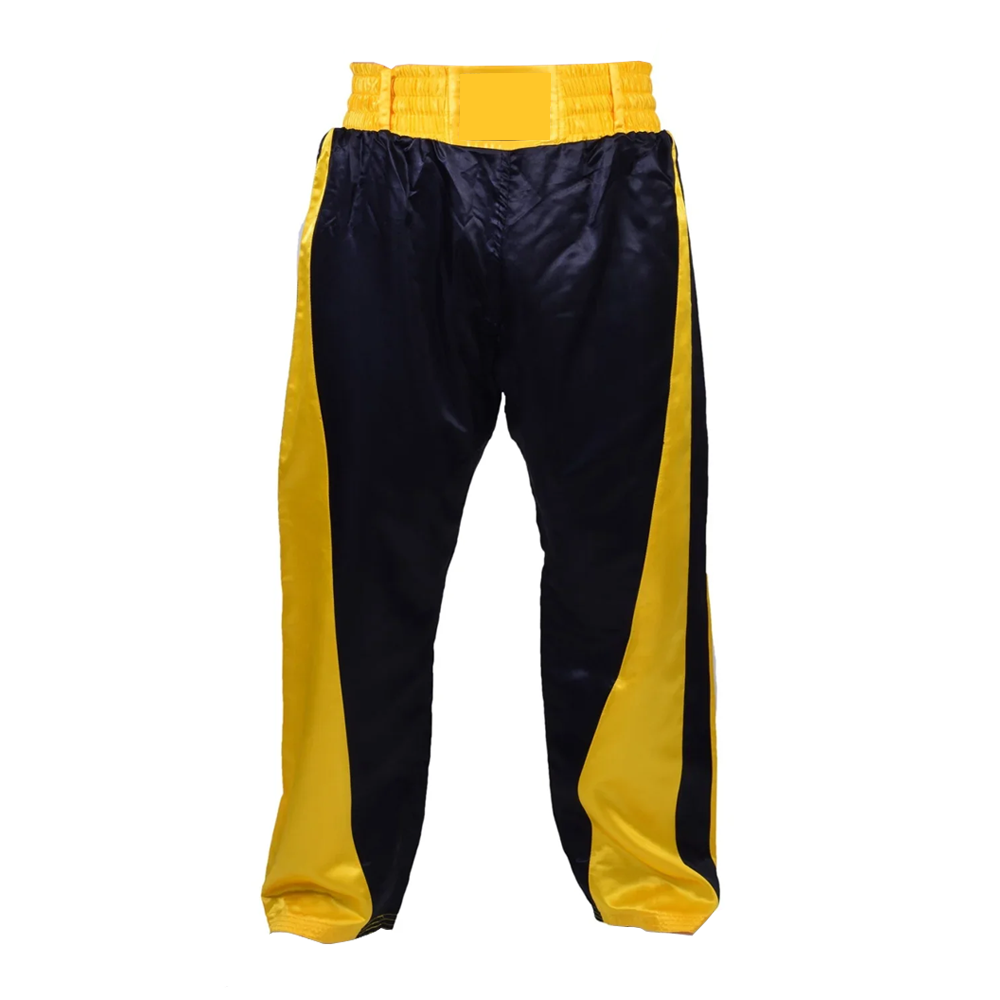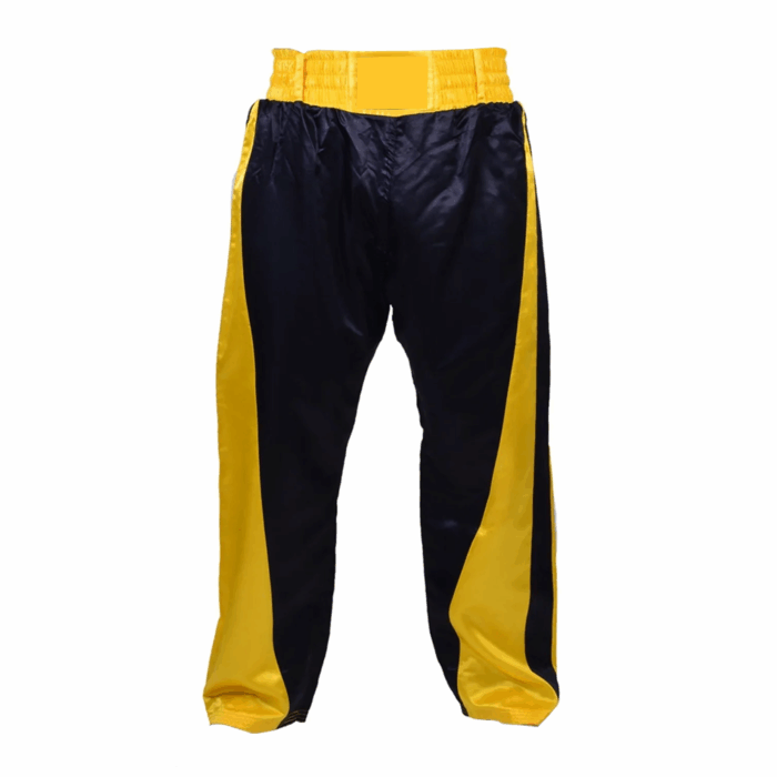 Tags: black and yellow fight pants, combat sports apparel UK, custom kickboxing trousers, full length kickboxing shorts, kickboxing team uniform supplier, Muay Thai trousers with logo, private label kickboxing pants, satin fight trousers manufacturer, wholesale kickboxing gear USA