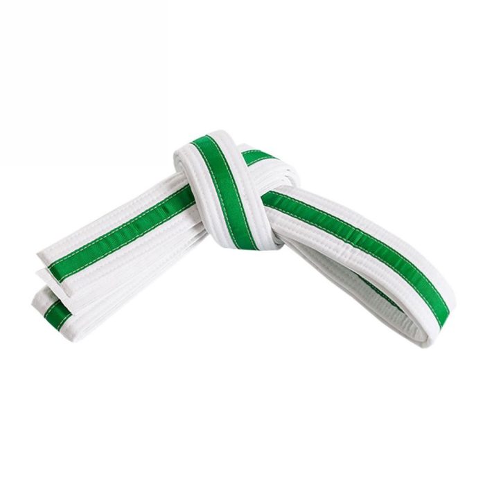 SKU: MA-BT-045 Categories: FIGHT WEAR, Martial Arts Belts Tags: beginner rank belt, belt manufacturer USA, bulk martial arts belts, custom belts for dojos UK, custom martial arts belts, embroidered rank belts, junior karate belt, private label martial arts belts, taekwondo striped belt, white belt green stripe