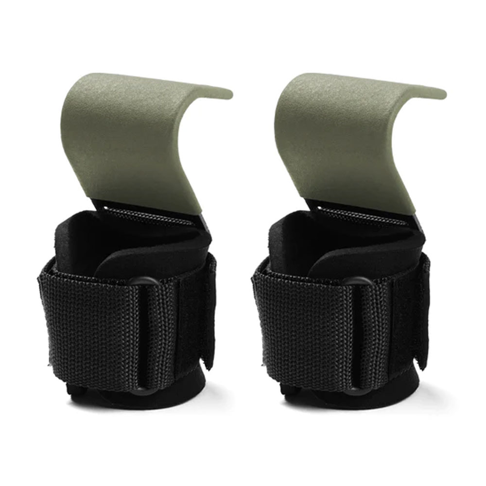 - Heavy-Duty Steel Hooks: Solid steel hooks with a durable, non-slip olive green coating securely grip the bar, transferring the load away from the fingers.